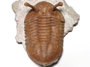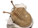 ロシア産オルドビス紀三葉虫の最も代表的な属であるAsaphus (アサフス)の中で、最も広く認知されている種類は、やはりこのAsaphus kowalewskii (アサフス コワレウスキイ)ではないでしょうか。このカタツムリか潜望鏡のような長い眼は、多くの堆積物がたまった海底から視界を確保するために発達したと考えられています。ロシア・オルドビス紀の地層からは、Asaphus (アサフス)だけでもたくさん種類が産出しますが、その種を年代の古い順に追っていきますと、ある系統のものはこのように眼の軸の長さがだんだん長く進化しているそうです。